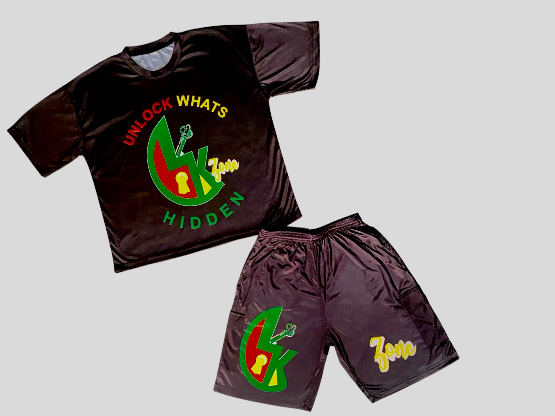 Step into the streets with a message—some things aren’t meant for everyone to see. This blacked-out limited set features the bold “Unlock What’s Hidden” graphic in red, yellow, and green, bringing pure mystery and power to your fit. Built for those who keep their moves lowkey until it’s time to shine.